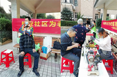 當天早上,工作人員和志愿者早早來到活動現場,擺好活動所需的工具,準備迎接居民的到來。活動一開始,社區的居民朋友們蜂擁而至。在工作人員的合理安排下測量血壓血糖、口腔檢查、眼科、中醫問診、中醫按摩、磨刀、修鞋、配鑰匙、義務理發……等等十余個便民義診服務項目得到順利開展。