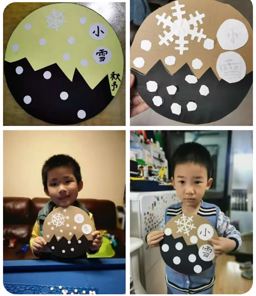 (3)用黑色記號筆寫出主題“小雪”并裝飾作品。