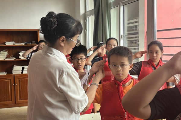 “敬禮不僅是一個動作,更是表達對祖國、對先烈的崇高敬意,姿勢要端正,眼神更要堅定。”在軍事技能講解環節,袁志華采用“三步教學法”教授同學們立正、稍息、敬禮等軍事訓練基礎動作,先拆分講解動作標準再進行動作示范,最后手把手指導。大家紛紛模仿練習,挺直的腰板、標準的手勢,展現出蓬勃的少年朝氣。