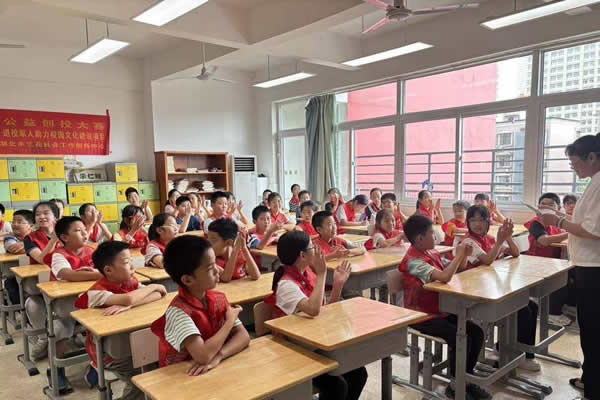 互動環節中,同學們踴躍提問,“袁奶奶,您在部隊里最難忘的事是什么?”“在面對困難時,您是怎么做的?”袁志華耐心解答每一個問題,鼓勵同學們要珍惜當下的幸福生活,從小樹立遠大理想,努力學習知識,將來用實際行動報效祖國。