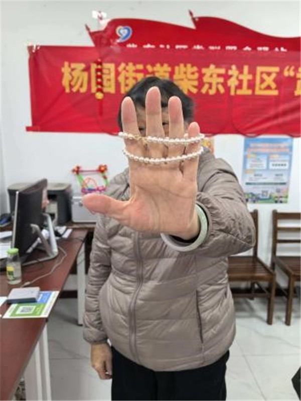 活動接近尾聲,老人們都完成了屬于自己的珍珠項鏈。看著手中串好的項鏈,王奶奶輕輕摸了摸珍珠,眼眶有些濕潤:“好久沒這么開心地做過手工了,謝謝你們還想著我們這些老人,這條項鏈我要好好戴著。”志愿者們還貼心地幫行動不便的老人把項鏈收好,叮囑他們回家后可以搭配喜歡的衣服。