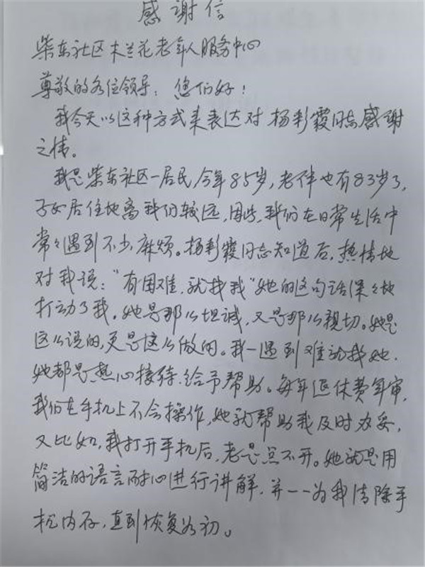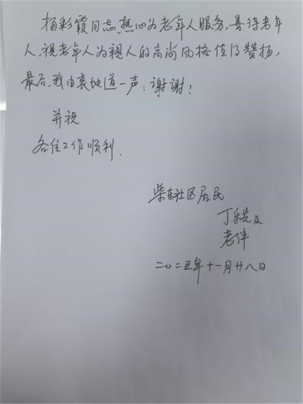 一面錦旗,是一份沉甸甸的信任;一封書信,是一片熱乎乎的真情。在柴東社區老年人服務中心,這份跨越“距離”的關愛仍在繼續,工作人員用行動詮釋著“老吾老以及人之老”的初心,讓每一位獨居老人都能在溫暖中安享晚年。
